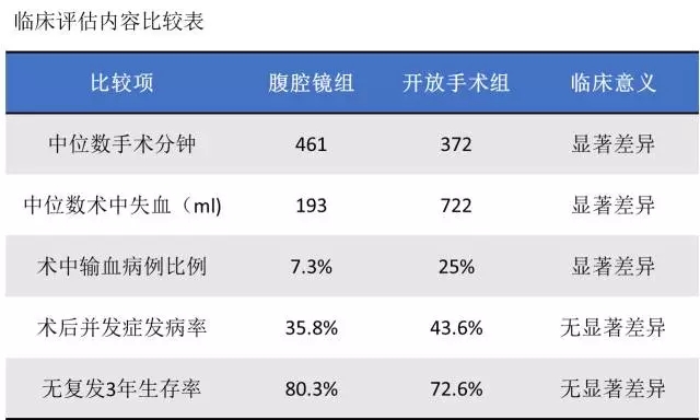 主要评测结果:比较腹腔镜和开放手术短期和肿瘤治疗学疗效