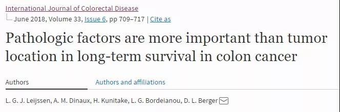 哈佛大学麻省总医院普外科和胃肠外科Berger医生,于今年3月14日在《国际结直肠病杂志》在线发表了一篇论文,题目是“病理因素在结肠癌长期生存率方面的影响比肿瘤发生的部位更重要”,论文将正式在6月的纸质杂志发表。