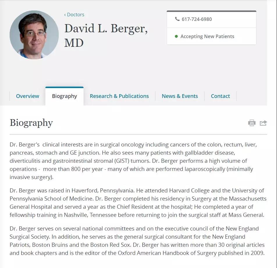 通讯作者David L. Berger,每年做800例手术,主要采用腹腔镜手术的方式