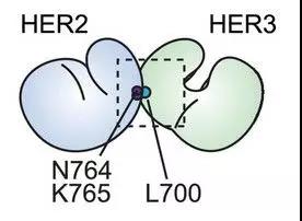 研究人员利用生物化学、生物物理以及计算机模拟计算,发现拉帕替尼会促进癌细胞膜上的HER2受体和HER3配体结合,生成一个二聚体,这个二聚体与癌细胞外部的天然生长因子结合,就会向癌细胞内传递信号,促进细胞分裂生长。