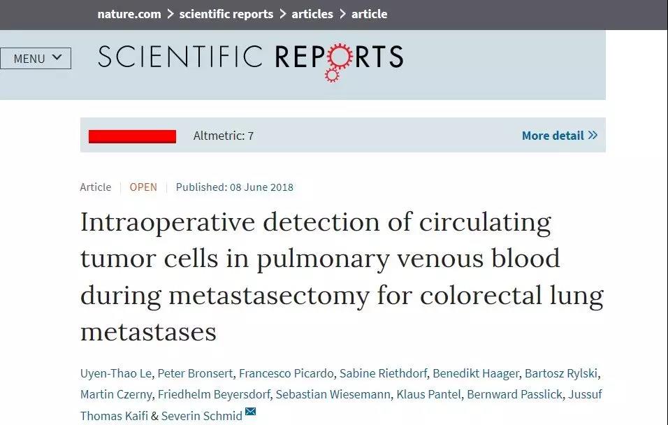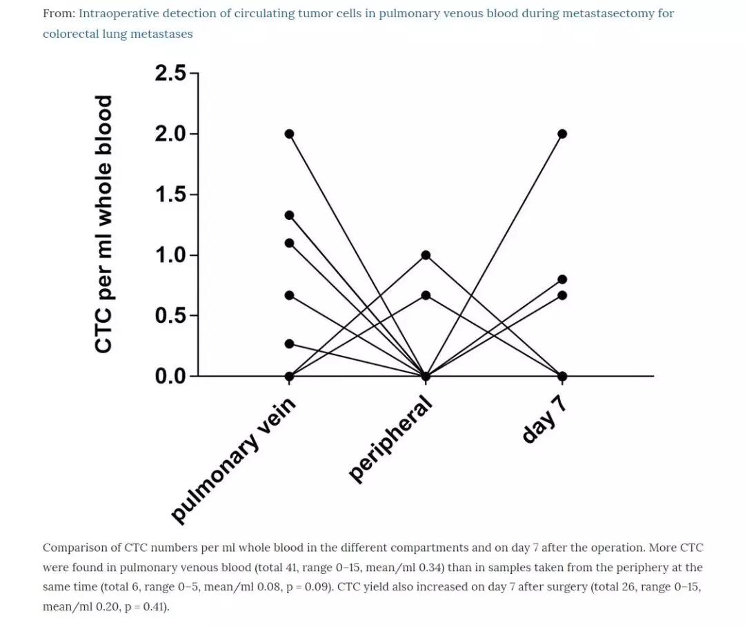 他们是医学史上第一个检测结直肠癌肺转移病人肺静脉血中CTC的,结果令人惊奇不已。