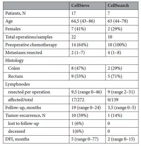 他们在24个结直肠癌肺转移瘤切除手术中,采集了转移癌病侧肺静脉血液。他们采用CellSieve-microfilters技术、免疫组织化学和Giemsa染色,对22个标本进行了枚举CTC检测。另外10个血液标本采用CellSearch-System进行分析。他们从肺静脉中枚举到癌细胞数(总计41,在0-15个范围),远远超过同时在肢体血管采血检测到的癌细胞数(总计6个,在0-5个范围,P=0.009)。在所有检测到CTC病例中,研究人员发现,肺静脉血中的癌细胞与肺转移结直肠癌导致局部淋巴侵犯有显著相关性(P=0.006),也就是说结直肠癌肺转移,并发肺部淋巴结转移的病人,肺静脉内更容易筛查到癌细胞。